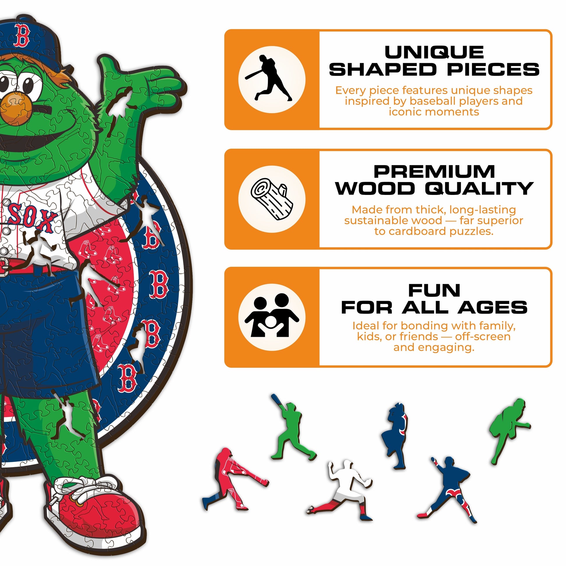✓ 1x Boston Red Sox™ Mascot - Official Wooden Puzzle