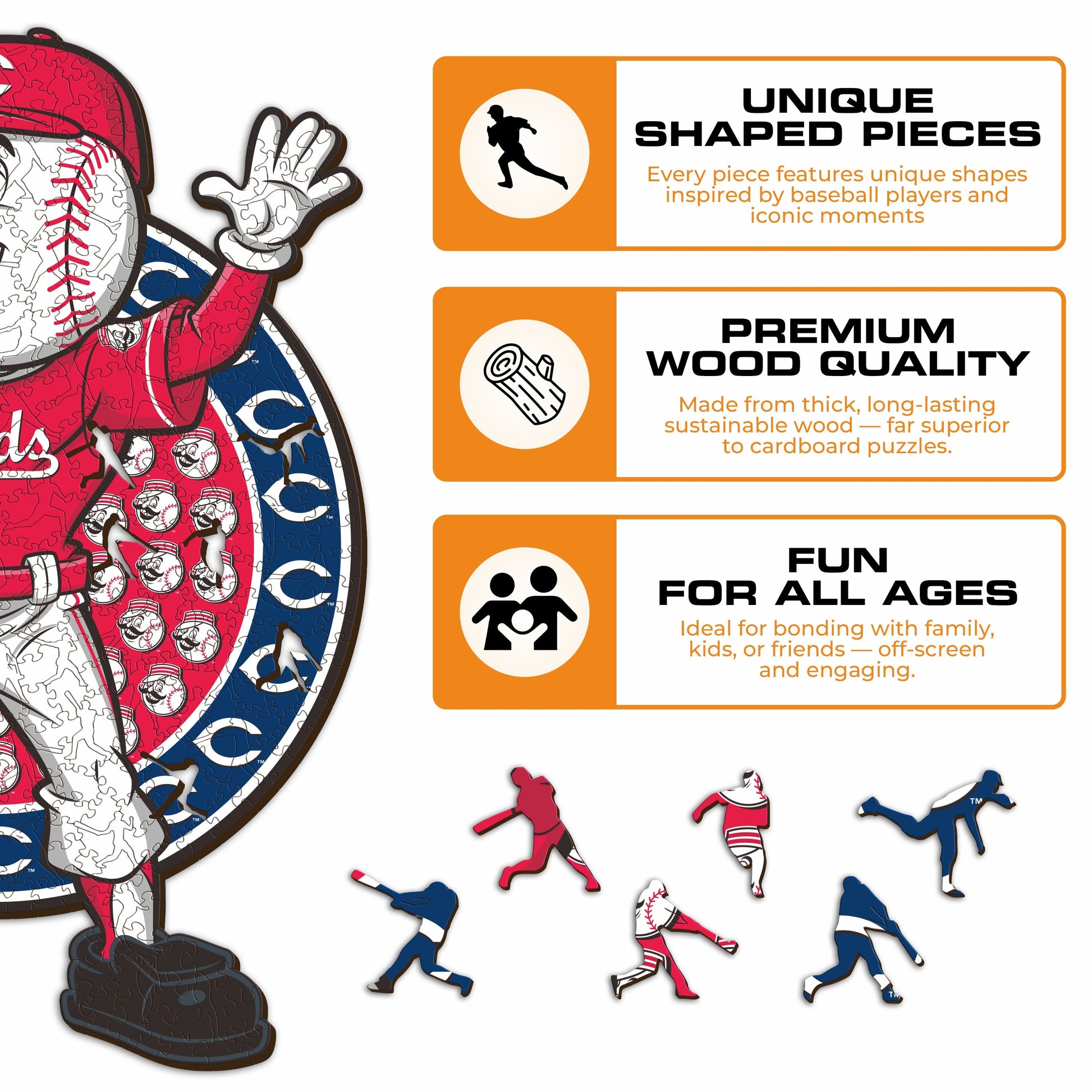 ✓ 1x Cincinnati Reds™ Mascot - Official Wooden Puzzle