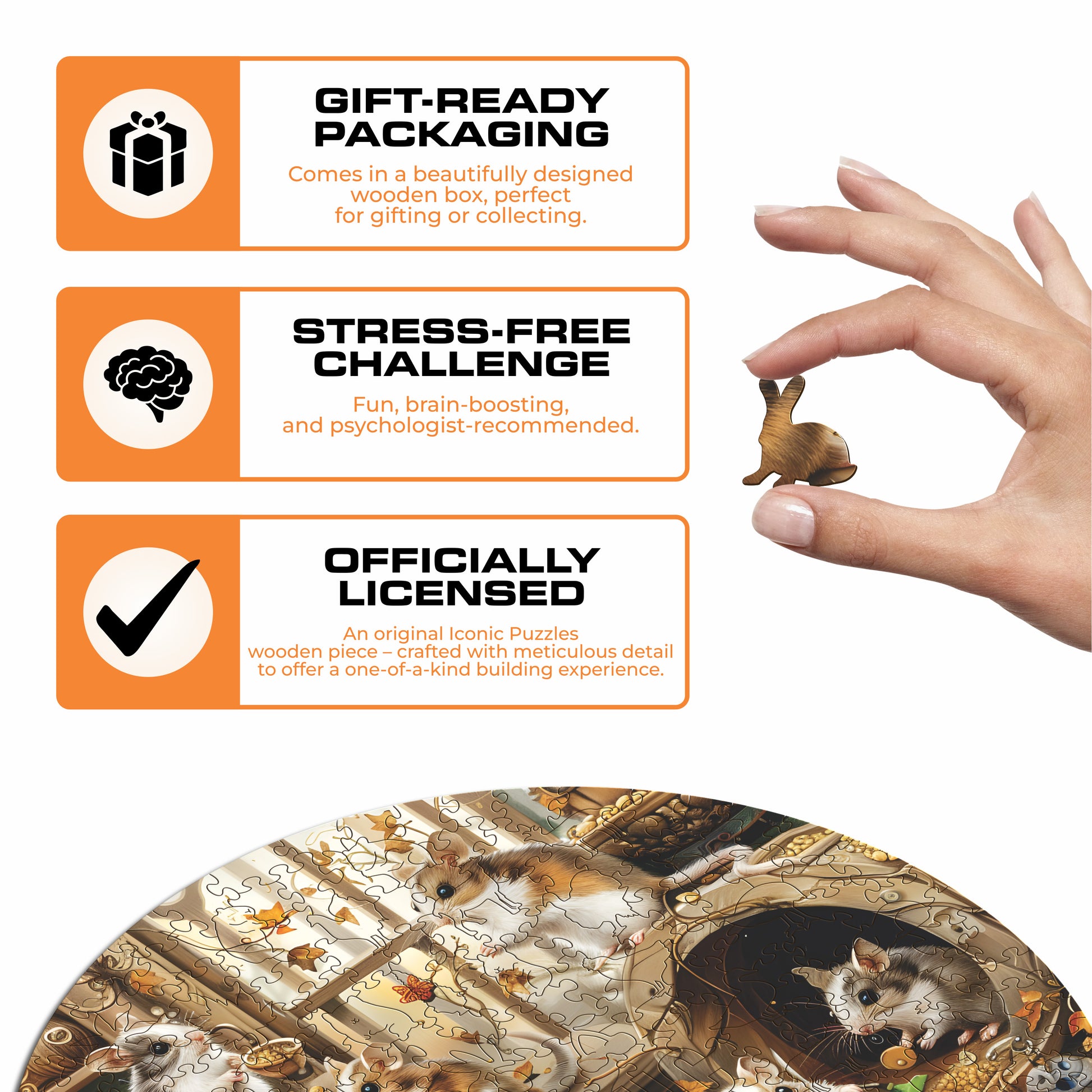 ✓ 1x Curious Hamsters - Wooden Puzzle