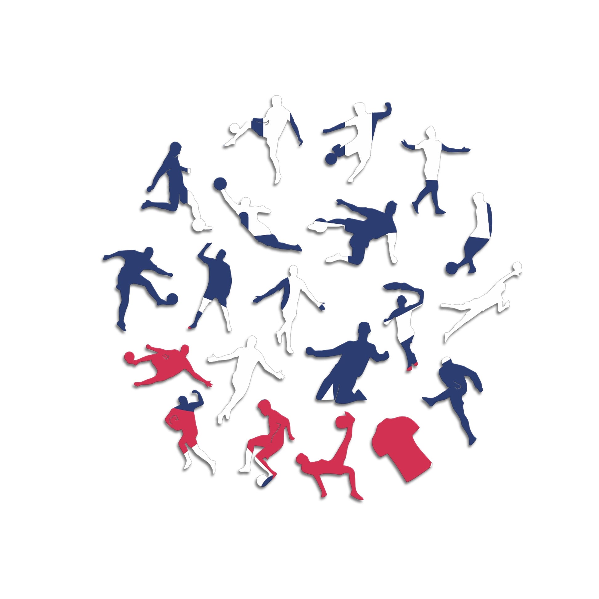 ✓ Each puzzle piece has a unique shape that depicts elements related to soccer and iconic players poses.