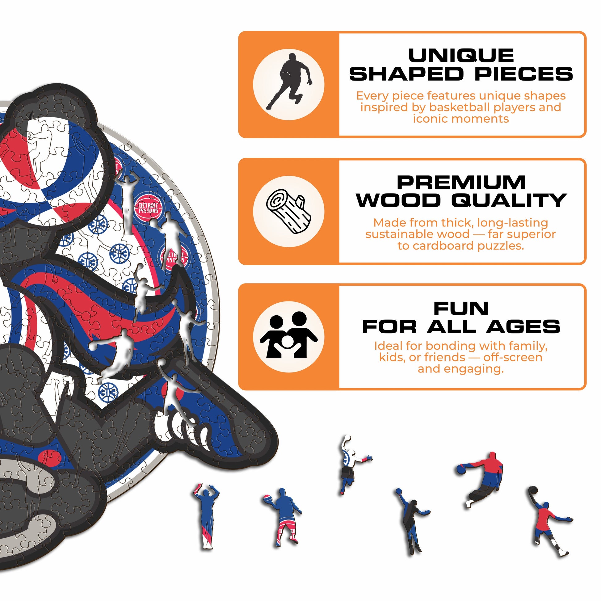 ✓ 1x Detroit Pistons™ Mascot - Official Wooden Puzzle