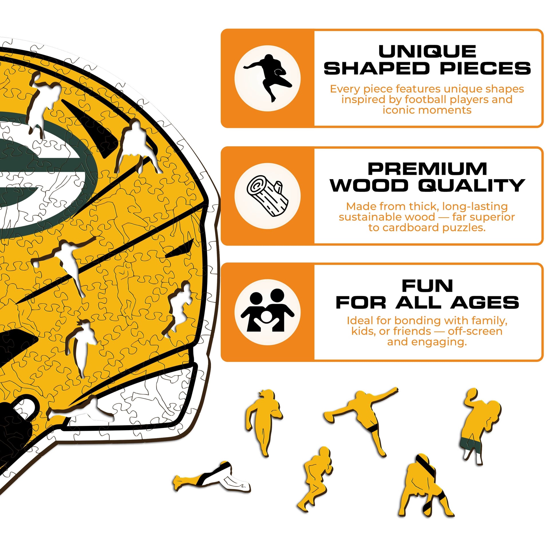 ✓ 1x Green Bay Packers™ Helmet - NFL Official Wooden Puzzle