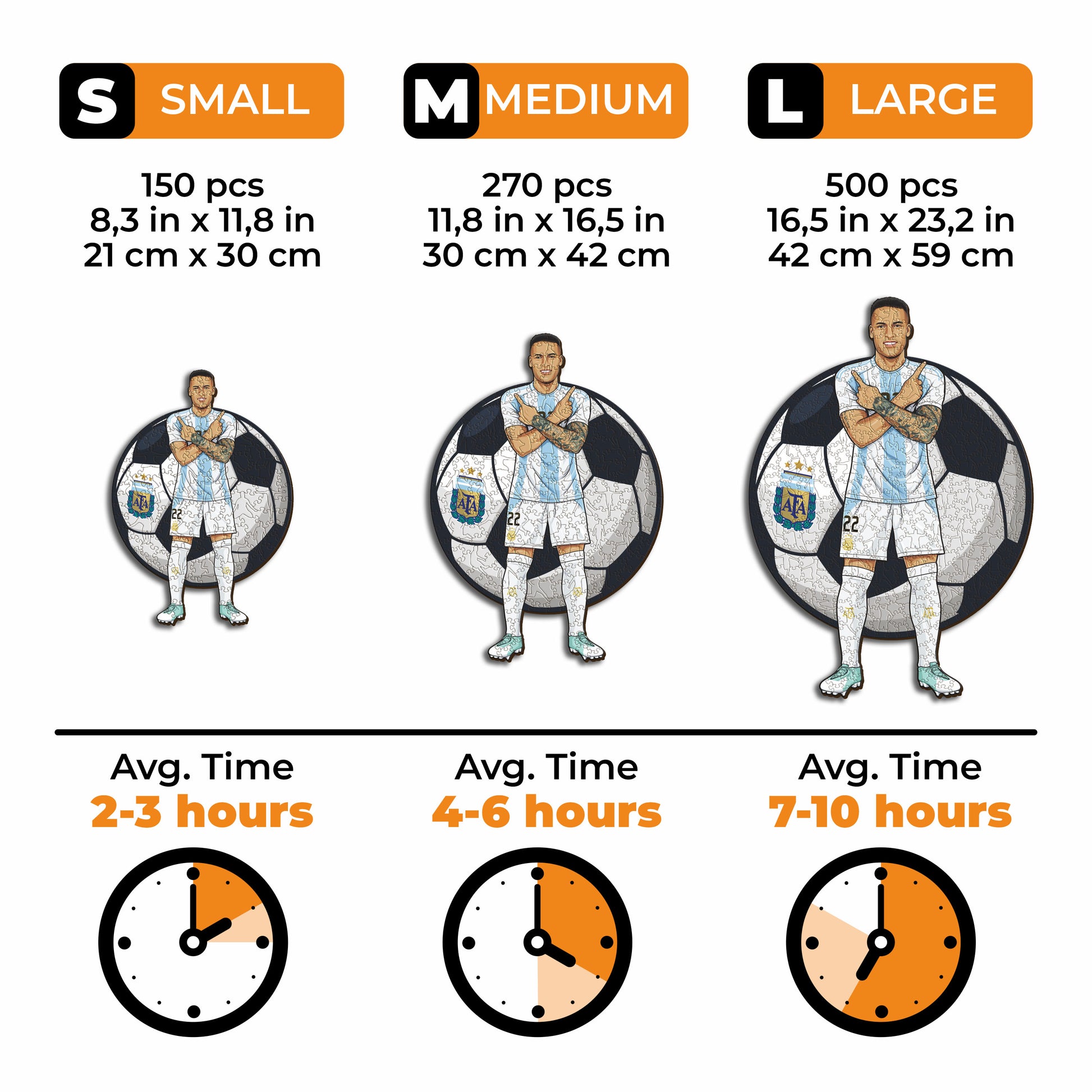 ✓ Each puzzle piece has a unique shape that depicts elements related to soccer and iconic players poses.