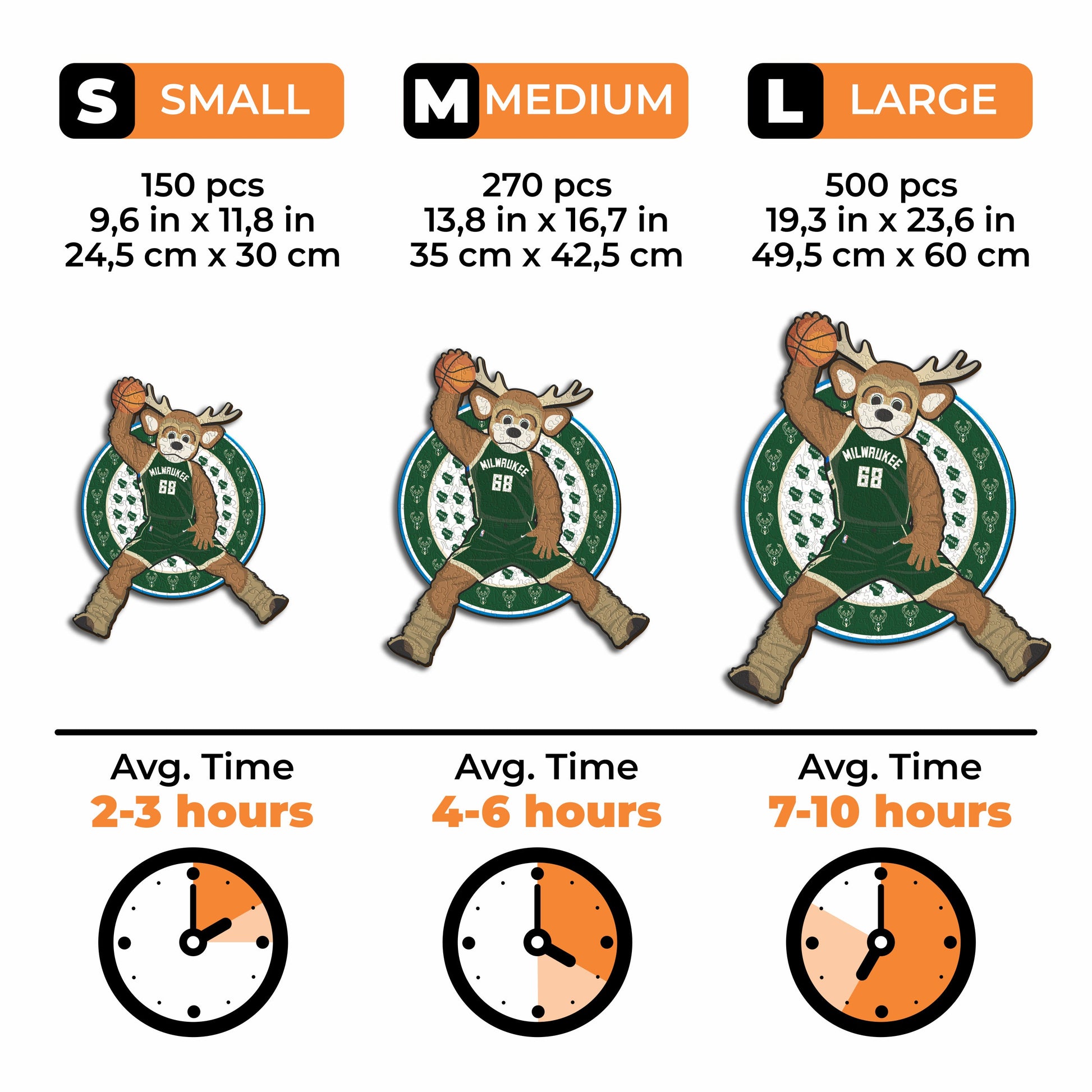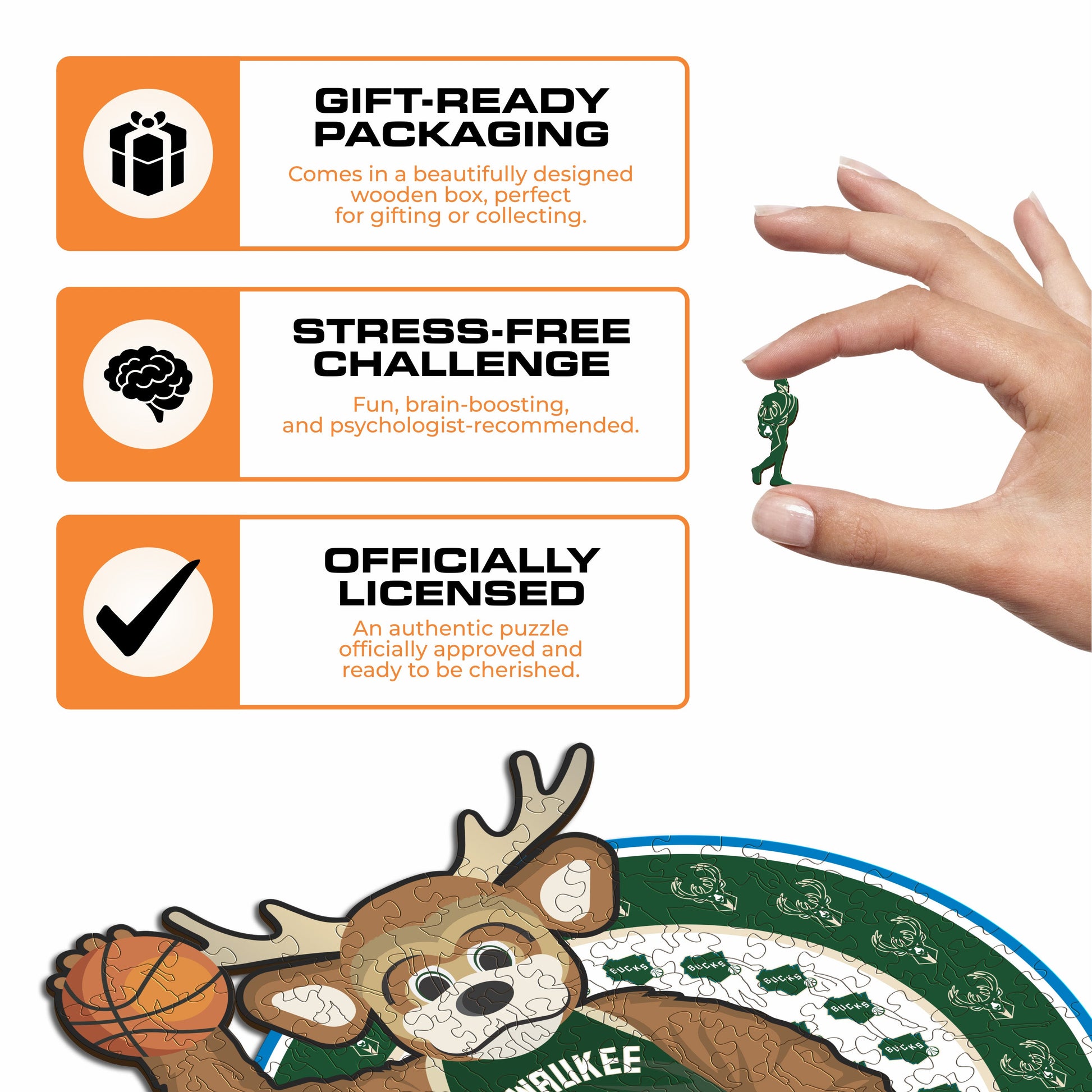✓ 1x Milwaukee Bucks™ Mascot - Official Wooden Puzzle