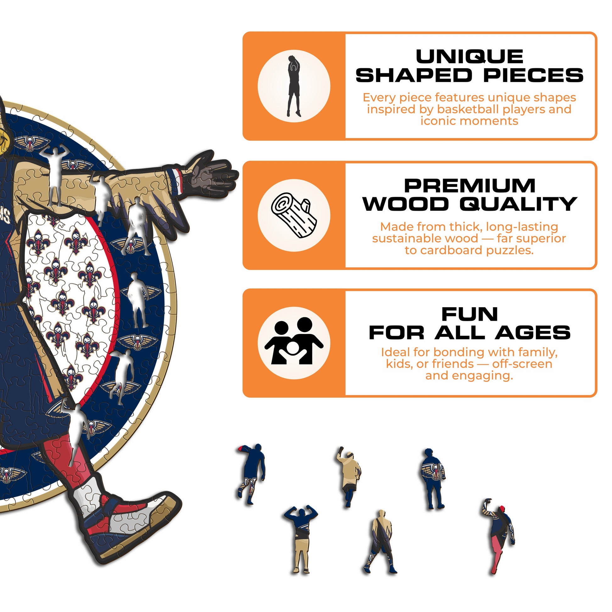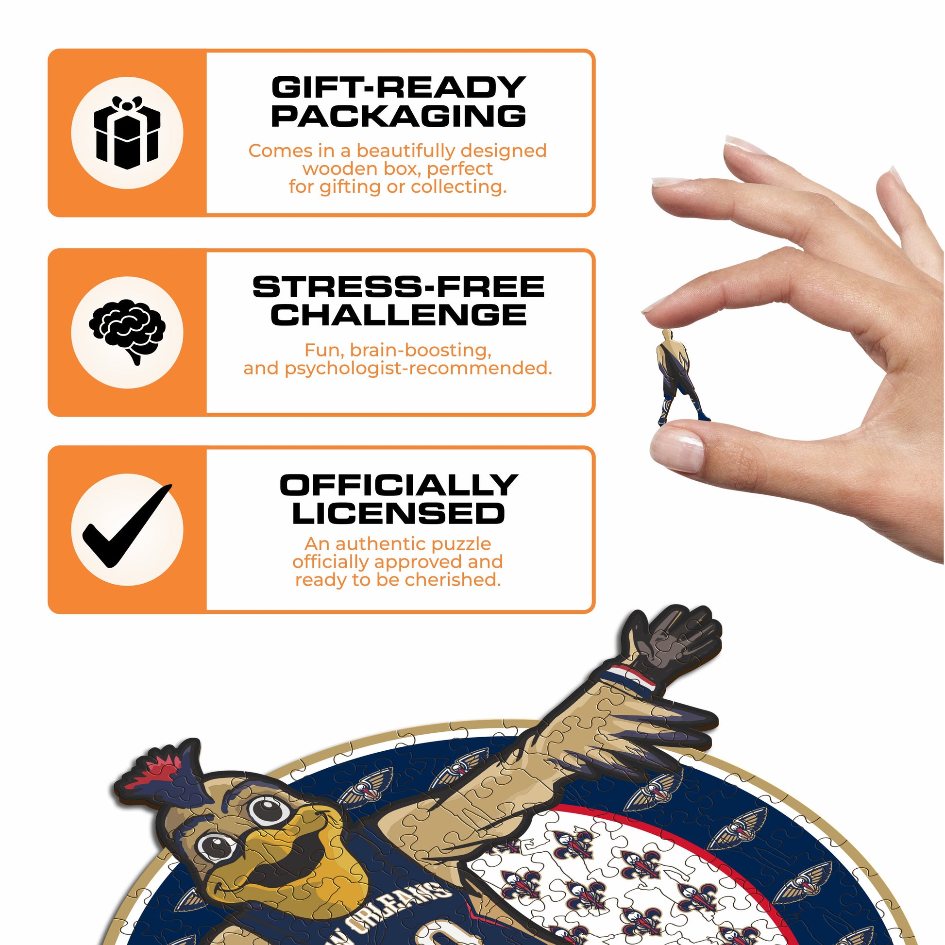 ✓ 1x New Orleans Pelicans™ Mascot - Official Wooden Puzzle
