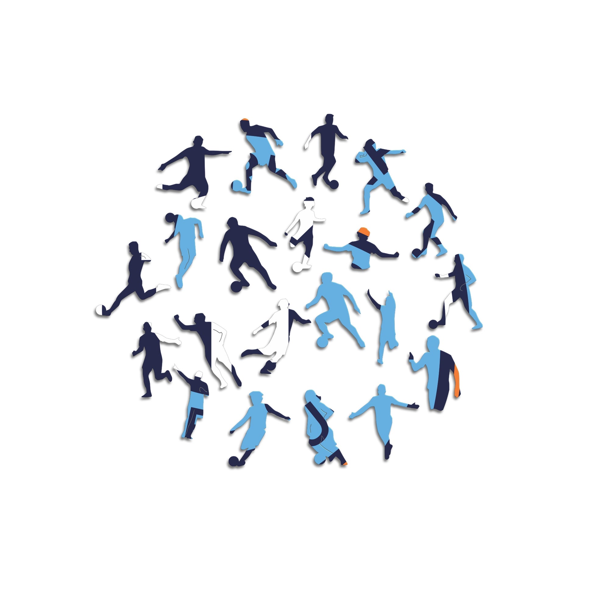 ✓ Each puzzle piece has a unique shape that depicts elements related to soccer and iconic players poses.