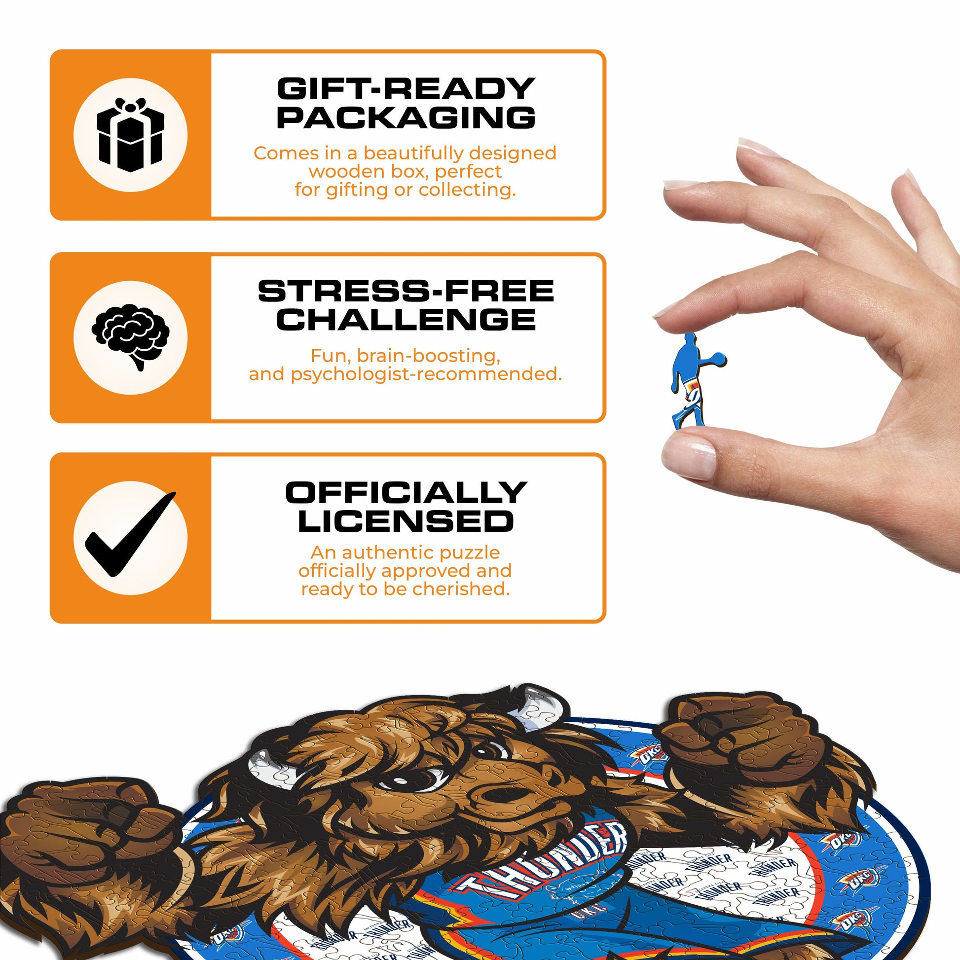 ✓ 1x Oklahoma City Thunder™ Mascot - Official Wooden Puzzle