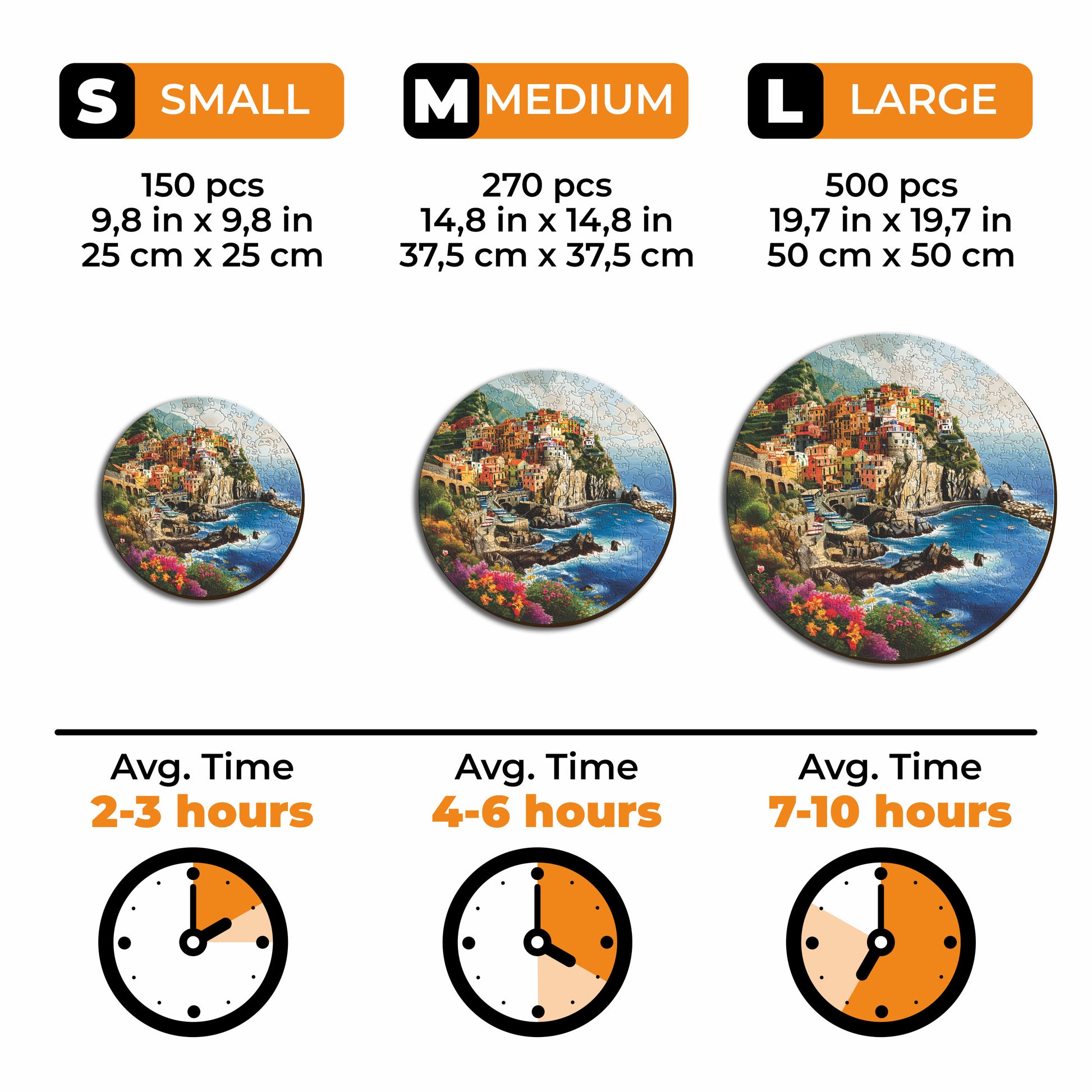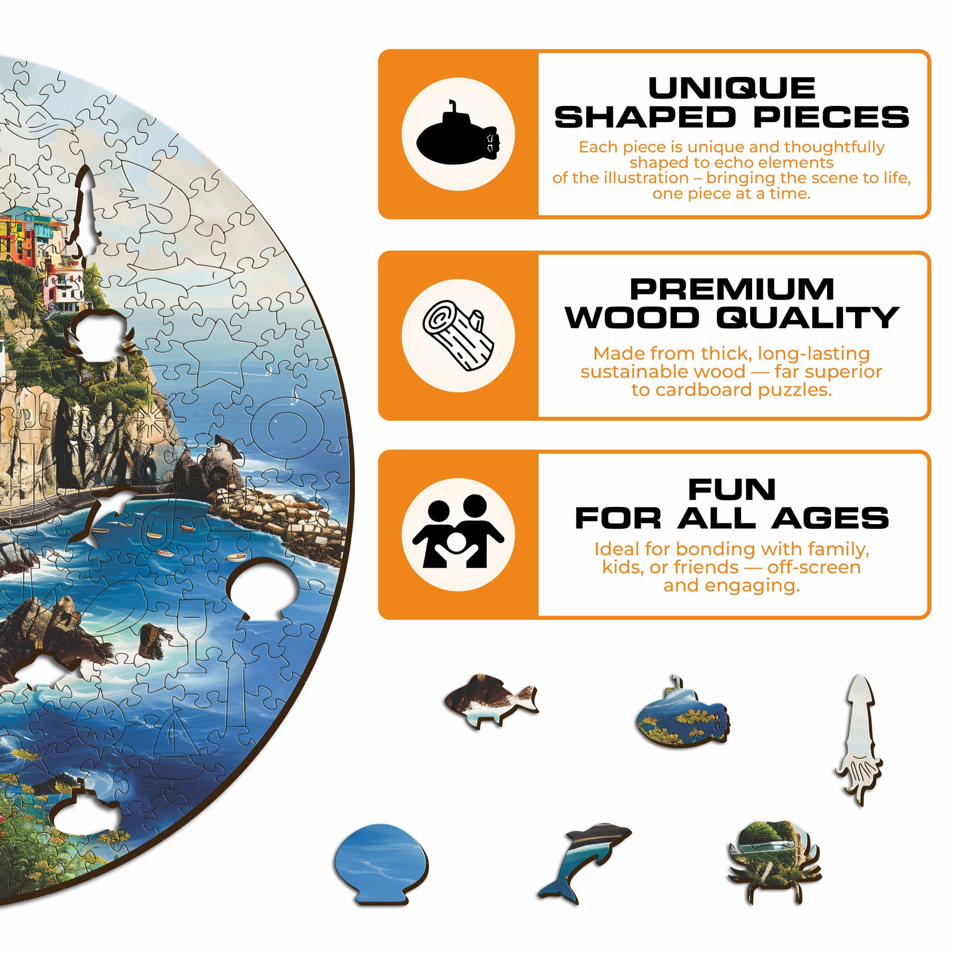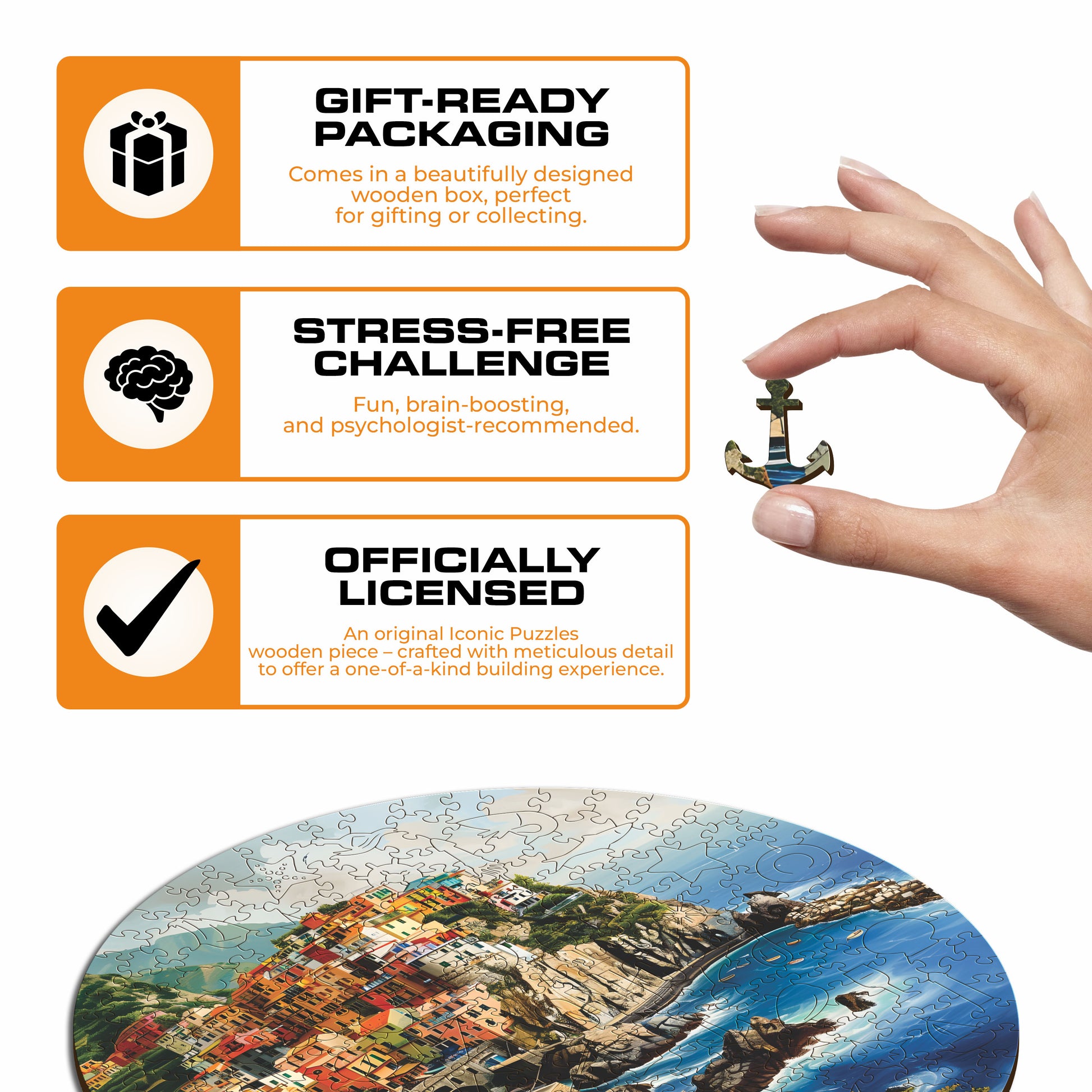 ✓ Each puzzle piece has a unique shape that depicts elements related to the Italy.