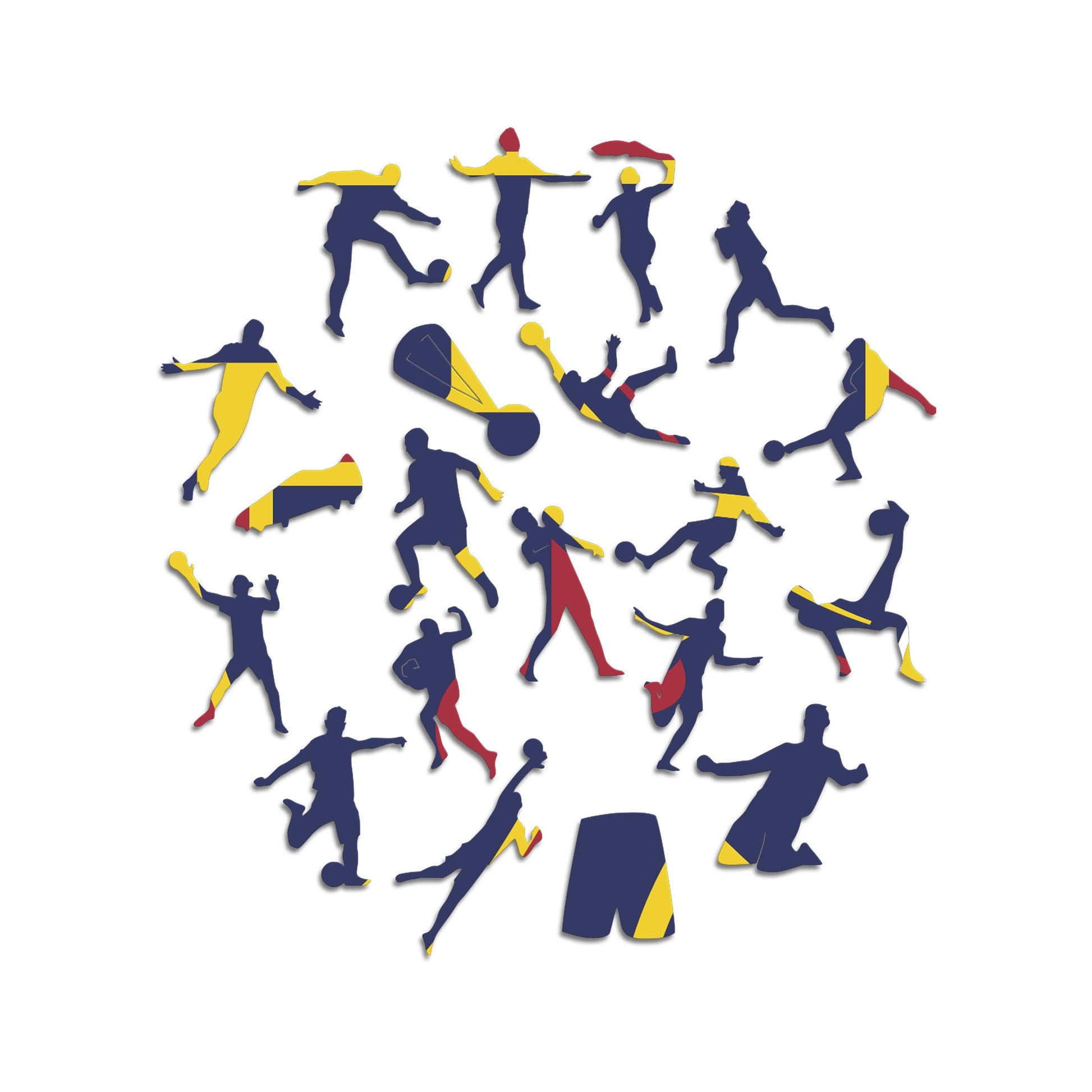 Each puzzle piece has a unique shape that depicts elements related to soccer and iconic players poses.