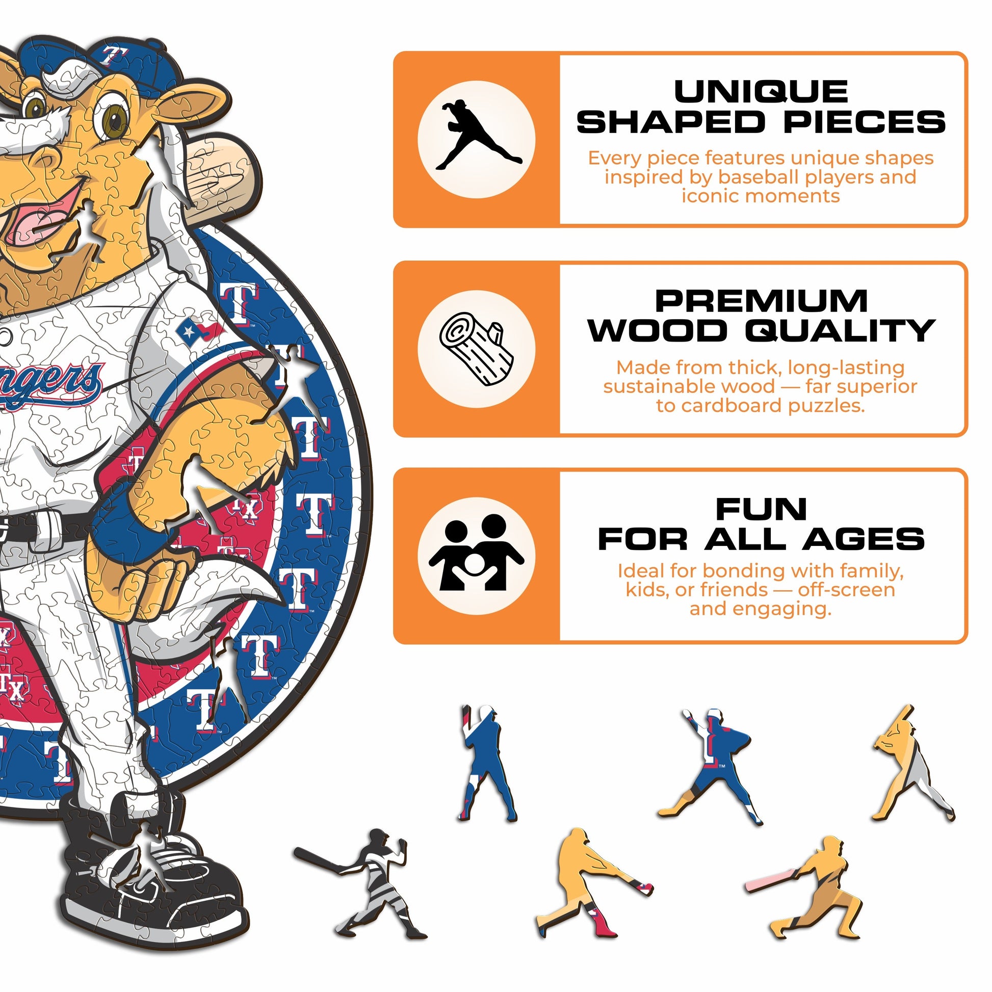 ✓ 1x Texas Rangers™ Mascot - Official Wooden Puzzle