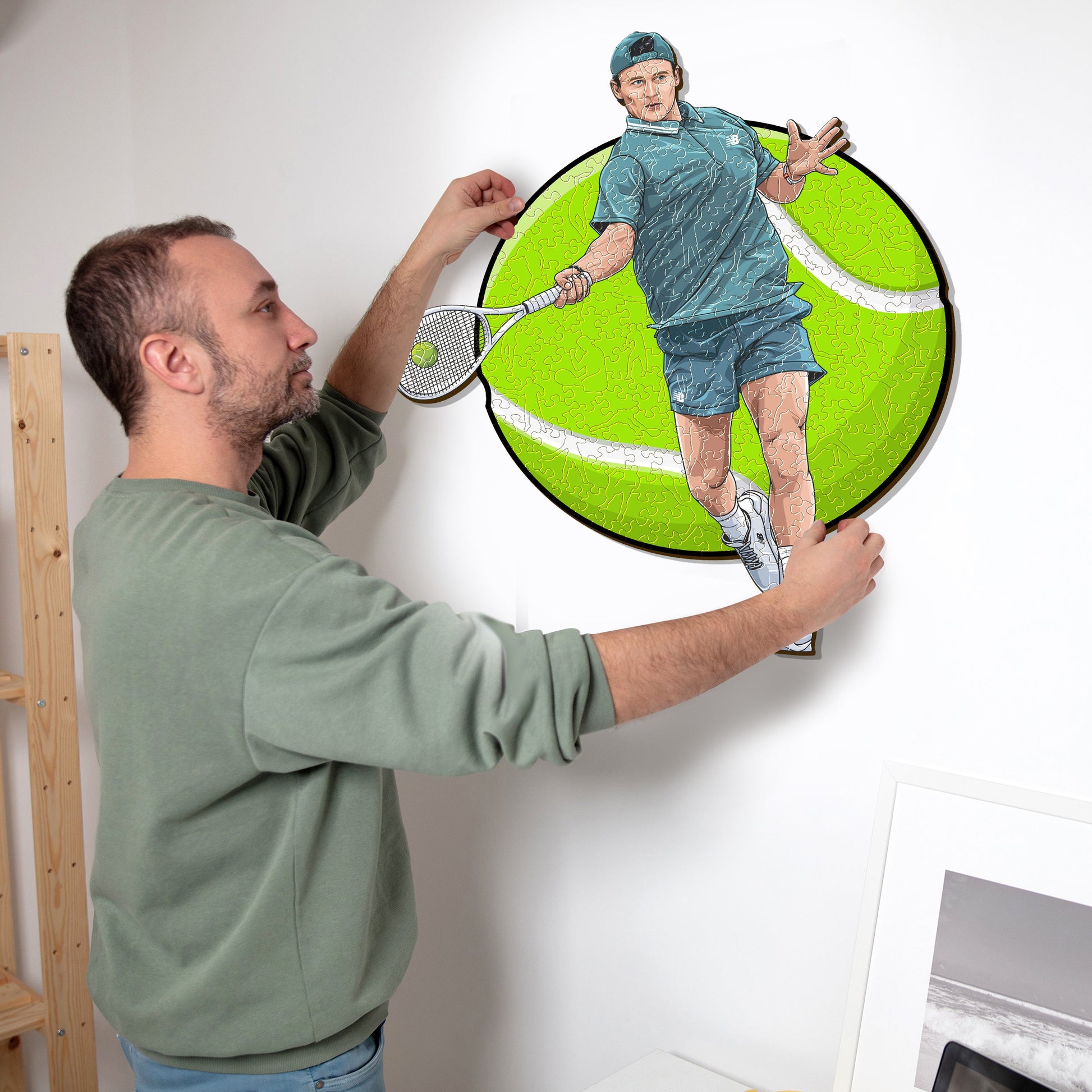 ✓ Each puzzle piece has a unique shape that depicts elements related to tennis and iconic player poses.